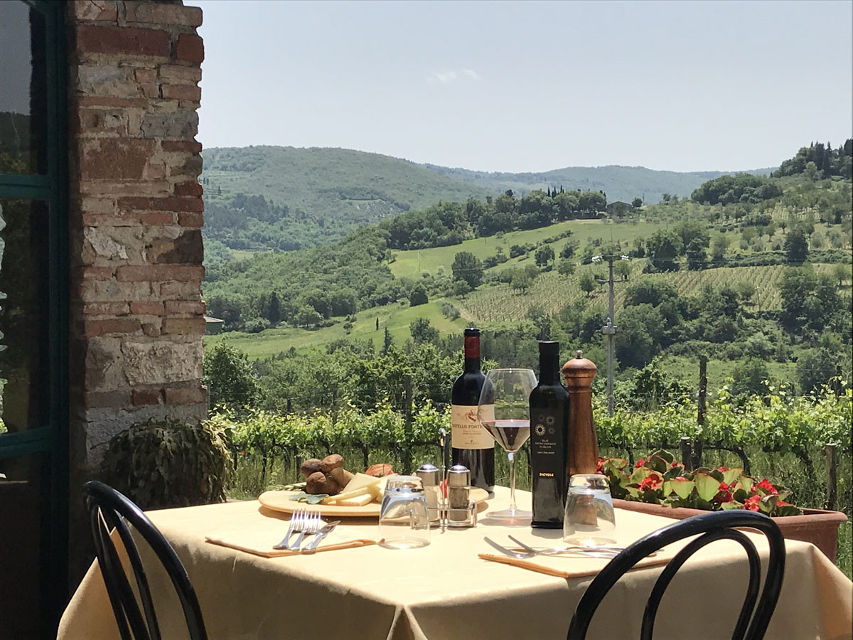 If you are traveling between Castellina in Chianti and Panzano, follow the signs to Osteria La Piazza. Suddenly you will find yourself in the magical setting of an old village: a few stone houses, a bright square and the restaurant with a pleasant rustic look, all set in the beautiful landscape of the classic Chianti. Everything here is dedicated to tranquility and enjoyment of life: here it is eaten in a large garden or on the veranda with spectacular views of the vineyards.